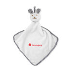 Schmusetuch „Hase“ aus samtigem Polyester (180g/m²) für Babys. Das Gesicht ist gestickt, damit keine Kleinteile verschluckt werden können.