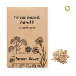 Blumenmischung verschiedener bienenfreundlicher Samen in einem Kraftpapier-Umschlag. Hergestellt in der EU. Sorten: Honigbiene oder Sonnenblume.