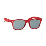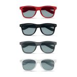 Farbige Sonnenbrille mit UV 400 Schutz in vielen verschiedenen Farben aus Kunststoff. Einheitsgröße. Der Aufdruck erfolgt auf einem Bügel (außen).