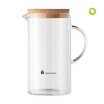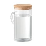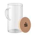 Hochwertiger Glas-Krug mit einem Verschluss aus Kork, auch für heiße Flüssigkeiten geeignet. Füllmenge: 1000 ml. Aufdruck auf dem Krug ODER auf dem Deckel.
