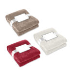 Bordeauxfarbene Flanell Fleece-Decke, 280 g/m² inklusive Geschenk-Band mit bedruckbarer Karte. Auch in den Farben Creme und Taupe erhältlich.