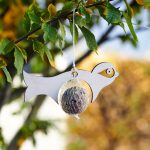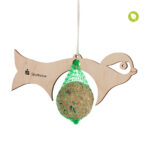 Futtervogel zum Einhängen von Meisenknödeln aus FSC zertifiziertem Holz. Hergestellt in der EU, inklusive einem Meisenknödel.