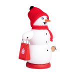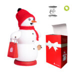 Sparkassen-exklusiver Räucher-Schneemann aus Holz mit Sparkassen-Signet auf der Geschenktüte. Dieser Schneemann wurde gemeinsam mit der Drechslerei Kuhnert in liebevoller Handarbeit entwickelt und wird in einer passenden Kartonage (nicht individualisierbar) verpackt und verschenkfertig versendet. Made in Germany – echt Erzgebirge!