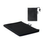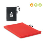Praktisches RPET-Sporthandtuch mit hoher Saugkraft in einem Non Woven RPET-Netzbeutel. Nachhaltig und platzsparend, auch in schwarz erhältlich.