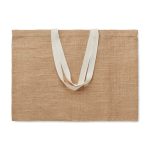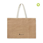 Große Einkaufstasche aus laminierter Jute mit langen Tragegriffen. Maximale Traglast 2,5 kg.