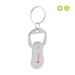 Schlüsselanhänger aus recyceltem Aluminium mit Flaschenöffner und Einkaufswagenchip, 2-in-1.
