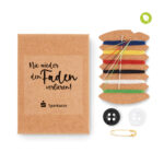 Kleines Nähset in nachhaltigem Kraftpapier-Umschlag mit den wichtigsten Nähutensilien für die Reise und im täglichen Gebrauch.