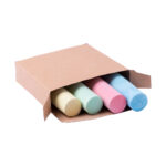 Farbige Kreiden (4 Stück) in Karton aus recycelter Pappe, veredelt mit einem individuellem Etikett auf der Vorderseite.