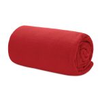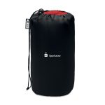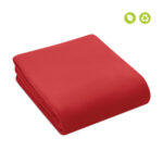 Kuschelige Fleece-Decke in RPET-Polyester-Tasche zum Zuziehen, Transportieren und Verstauen. Der Aufdruck erfolgt auf der Polytasche oder auf der Decke.
