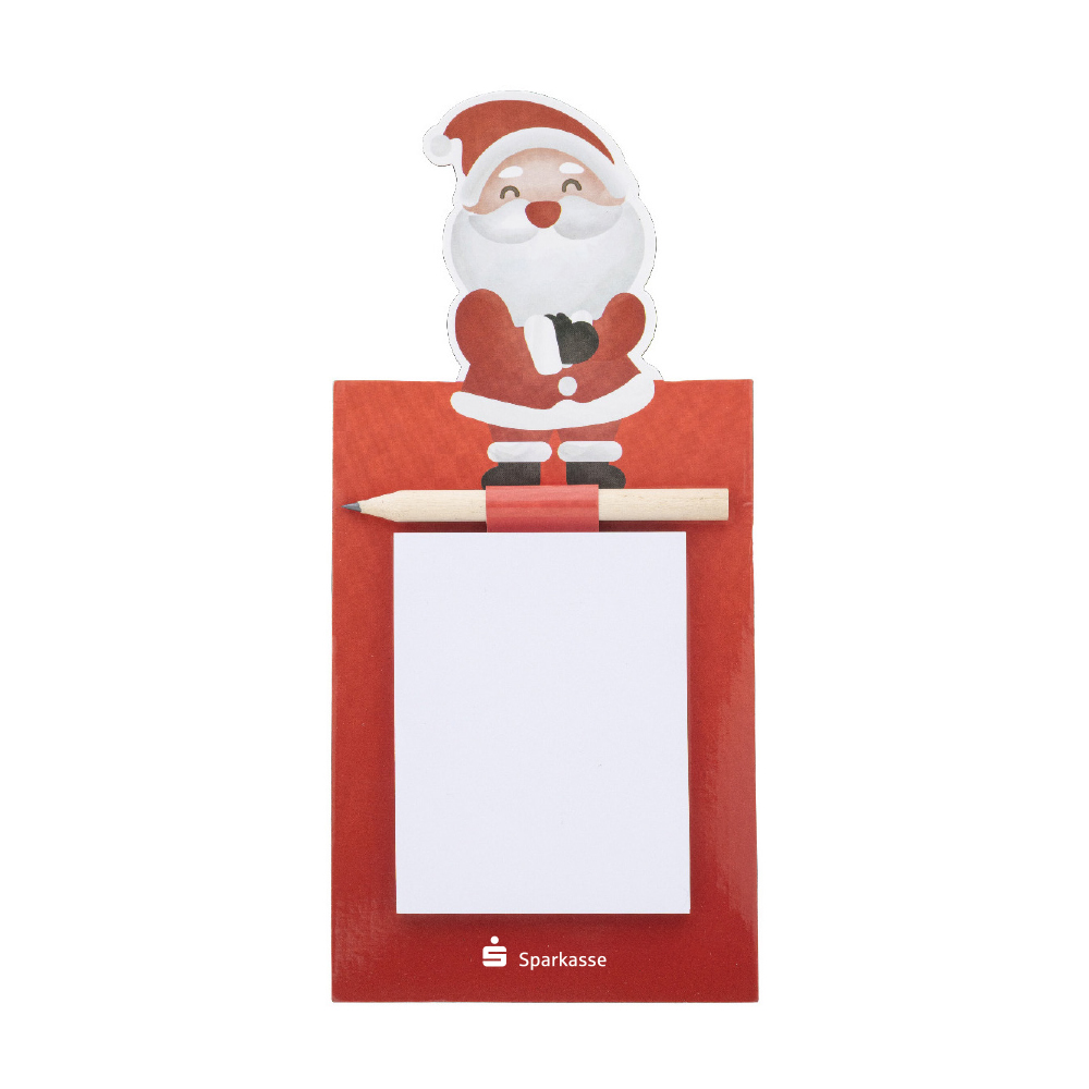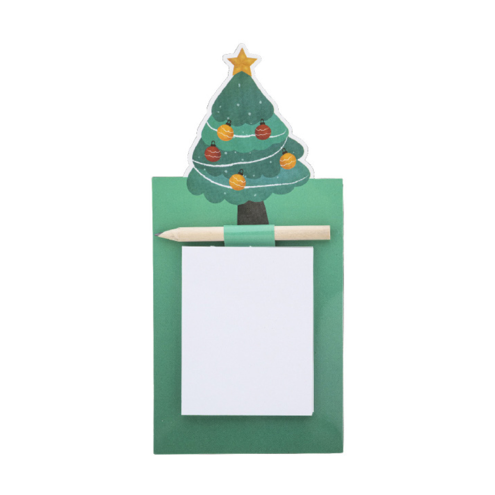 Kühlschrankmagnet im Weihnachtsdesign mit 40-Blatt-Notizblock und Mini-Holzbleistift.