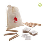 Weihnachts-Memory-Spiel zum Ausmalen in einer Tasche aus Baumwolle. Beinhaltet ein Papp-Memory-Spiel (24 Plättchen) mit Weihnachtsmotiven und 12 Holz-Buntstiften in einer Pappschachtel.