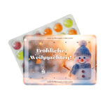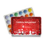 Der wohl kleinste Adventskalender der Welt mit verschiedenen Fülloptionen, optimal als kleines vorweihnachtliches Geschenk für Mitarbeiter oder Kunden! Füllung: Schoko-Linsen mit Vollmilchschokolade (mit Fairtrade-Kakao mit Mengenausgleich) ODER zuckerfreie Pulmoll-Bonbons ODER SKITTLES® Original Fruity Candy. Saisonware.