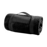 Fleece-Decke mit praktischem Trageriemen (schwarz), die bei keinem Picknick oder Ausflug ins Grüne fehlen sollte! Der Aufdruck erfolgt auf dem Trageriemen. Erhältlich in den Farben rot, schwarz und grau. Maße offen: ca. 130 x 160 cm