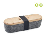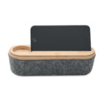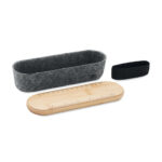 Federmäppchen aus RPET-Filz mit Deckel aus Bambus (mit Lineal 5,5 Zoll & 13,5 cm) und Gummiband zum Verschließen. Der Deckel beinhaltet auf der Rückseite einen integrierten Handyhalter.