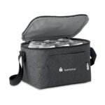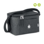 Nachhaltige Lunch-Tasche aus 2 tone 600D RPET mit einer Fronttasche und Tragegurt. Das Gesamtfassungsvermögen beträgt 3 Liter.