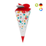 Schöne Schultüte in zwei verschiedenen Größen aus 300g/m² Chromosulfatkarton, einseitig bedruckt. Die Innenseite der Schultüte ist weiß, die Außenseite kann komplett individuell gestaltet werden. Auf Anfrage versehen wir die Schultüten auch gern mit (süßer) Füllung, sonst erfolgt die Lieferung der Schultüten ungeklebt und flachliegend (plano). Preis bezieht sich auf Größe S.