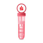 Seifenblasen in farbig transparentem Behälter mit runder Werbefläche am Griff. Erhältlich in vielen verschiedenen Farben. Nicht geeignet für Kinder unter 3 Jahren. Füllmenge: 30 ml.