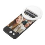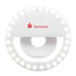 Ringlicht aus Kunststoff mit 28 LEDs für optimale Beleuchtung auf Handyfotos/Videos. Mit 3 einstellbaren Helligkeitsstufen und eingebautem Akku, inklusive USB-­Ladekabel.