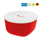 Formschöne Schale mit Deckel aus recycelbarem Material – optimal für den Snack unterwegs oder im Büro. Quadratische Grundform, nach oben hin läuft sie kreisrund aus. Besonders langlebiges, geschmacksneutrales, lebensmittelechtes und spülmaschinenfestes Material, 100% recycelbar. Ohne Schadstoffe, MADE IN GERMANY. Füllmenge: ca. 1 Liter. Auch in hell- oder dunkelgrau erhältlich.