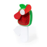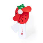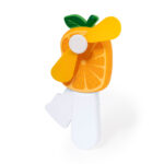 Manueller Ventilator aus widerstandsfähigem ABS in verschiedenen farbenfrohen Obstformen (Erdbeere, Orange, Melone) – perfekt für den Sommer! Durch ständiges Drücken des integrierten Hebels im Griff bewegen sich die Flügel.