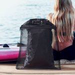 Wasserfester Beutel in einer Netztasche mit Reißverschluss. Ideal für den Einsatz auf einem Boot oder am Strand. Fassungsvermögen von 6 Litern. Sowohl Tasche als auch das Netz sind aus recyceltem PET-Kunststoff hergestellt.